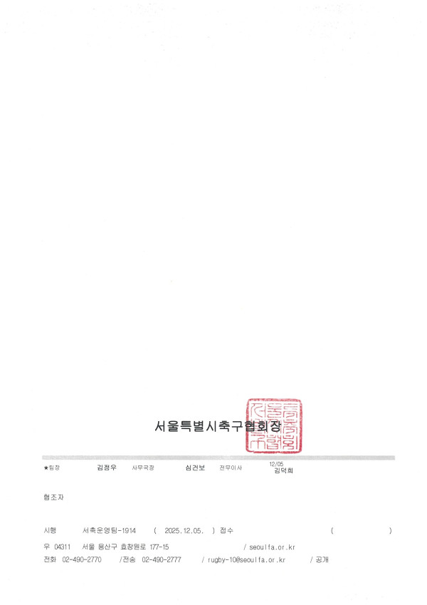 - 이전글2025년도 시도협회 행정직원 워크샵 개최에 따른 서울시축구협회 사무국 휴무 알림 25.12.10